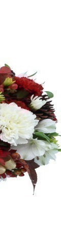 Send flowers to friends and loved ones this Christmas with the Celebrate the Season Flower Arrangement. A lovely addition to festive celebrations, it includes 8 red carnations, 3 white carnations, white alstromeria, green chrysanthemums, and a single white candle for lighting up your Christmas dinner display. Skilfully arranged to maximise the natural beauty of every bloom, it is the perfect flower gift for Christmas, Thanksgiving, and New Year's.