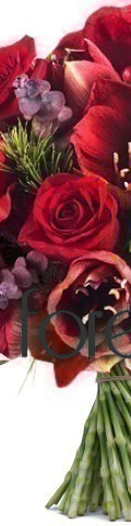 6 x Red Amaryllis, 3 x Red Roses, Red Hypericum Berries, 2 x Pine Cones